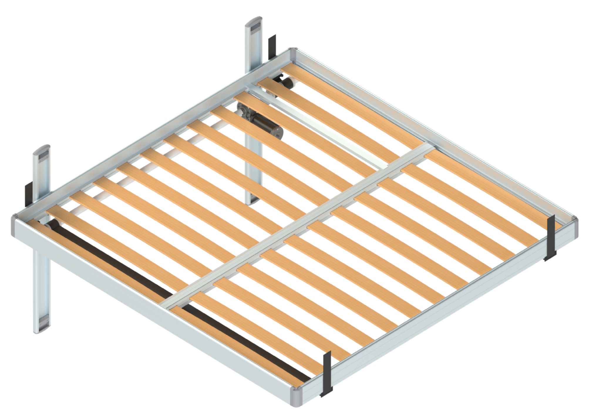 Le kit est fourni en 2 parties permettant une personnalisation des dimensions du sommier. Celui-ci est fourni avec des dimensions maximum de 1600 x 2000 mm mais il est possible de recouper les profils en aluminium pour adapter les dimensions à chaque véhicule.