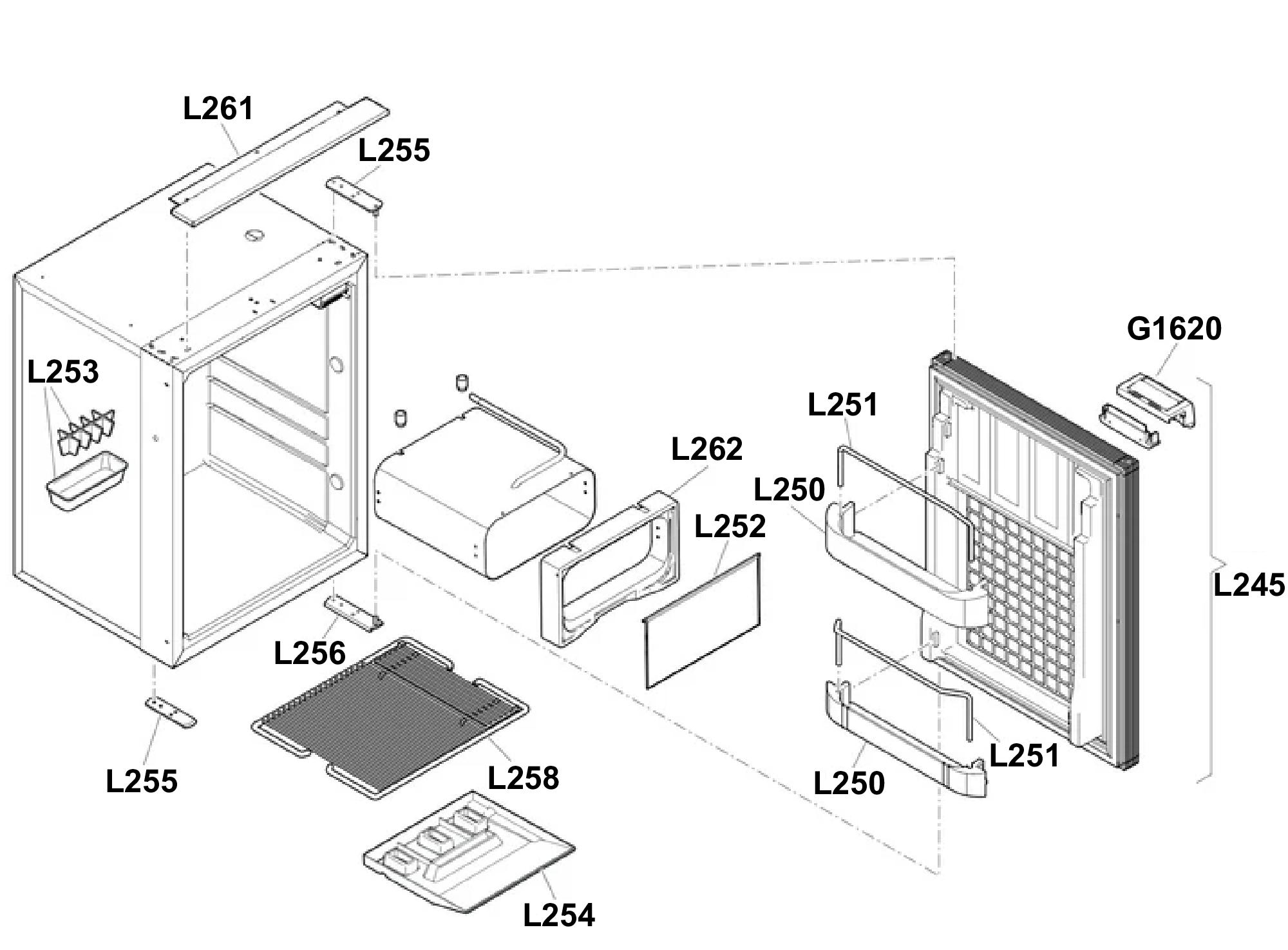 Voici toutes les pièces détachées disponibles pour le frigo CRUISE 42 de chez INDEL B.
