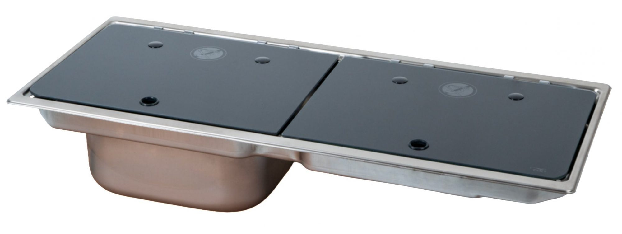 Le FL1922L-P-W est un combiné cuisson et évier en inox conçu pour les camping-cars et aménagements mobiles. Il intègre deux brûleurs gaz et un évier positionné à gauche, protégés par des couvercles en verre trempé noir avec charnières anti-vibrations. Il permet d'optimiser l’espace de votre véhicule tout en offrant une finition soignée.