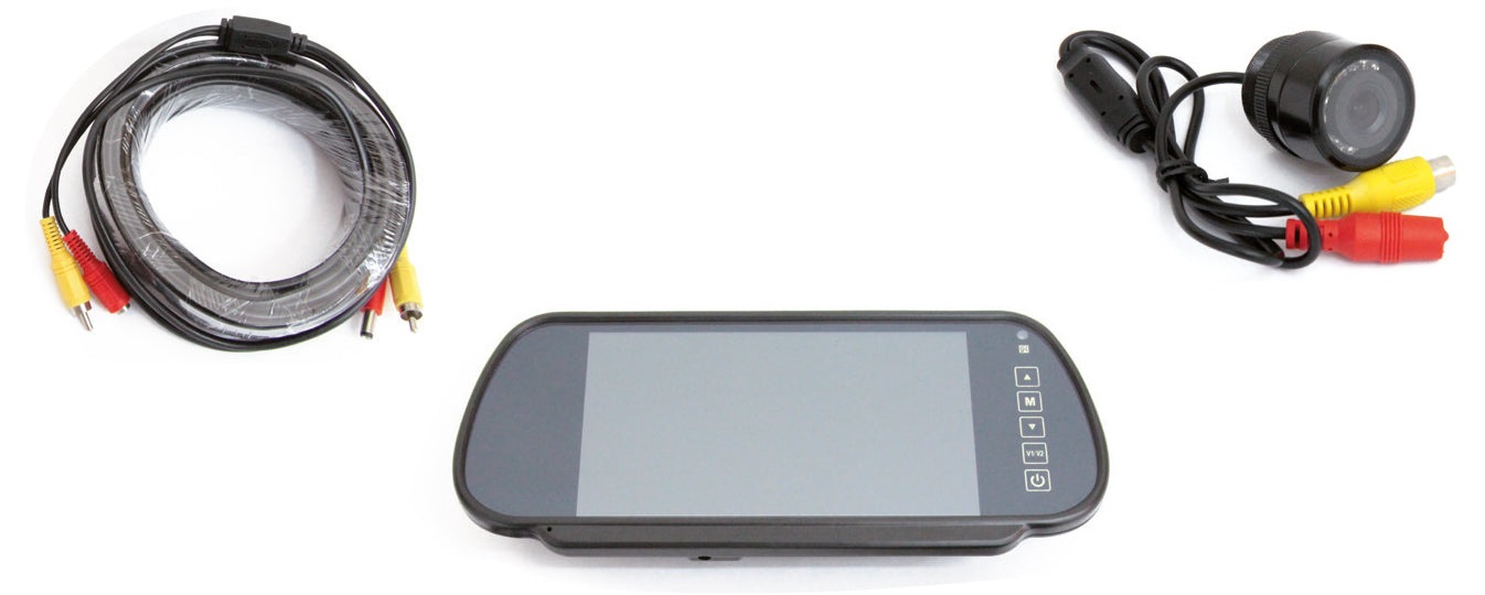 Le kit inclut également un câble de rallonge de 12m pour une pose flexible, ainsi qu'un moniteur miroir LCD de 7 pouces, pour une image plus nette et confortable.
