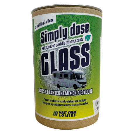 Le nettoyant en pastille effervescente Simply Glass est spécialement conçu pour l’entretien des baies et lanterneaux en acrylique des camping-cars, fourgons et vans aménagés. Efficace même en eau dure, il se dissout rapidement pour offrir une action nettoyante performante et sans effort.
